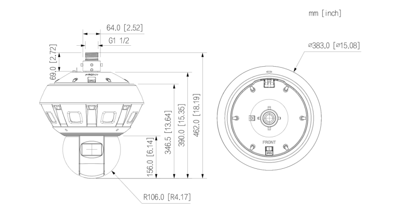 · 近攝距:全景:1.2m球機(jī):500mm~2000mm(近焦到遠(yuǎn)焦);