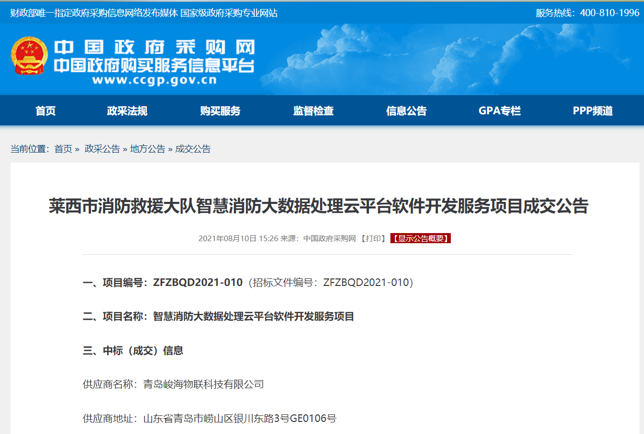 日前,峻海物聯(lián)再次中標(biāo),成功斬獲“萊西市消防救援大隊(duì)智慧消防大數(shù)據(jù)處理云平臺(tái)軟件開(kāi)發(fā)服務(wù)”項(xiàng)目,為公司業(yè)務(wù)的可持續(xù)發(fā)展再添新彩。