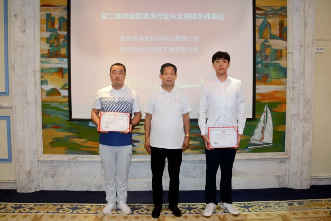 鄭海申會(huì)長(zhǎng)為獲得第二批排油煙清洗行業(yè)從業(yè)資格條件的單位頒發(fā)證書(shū)