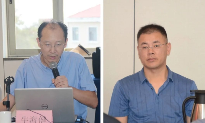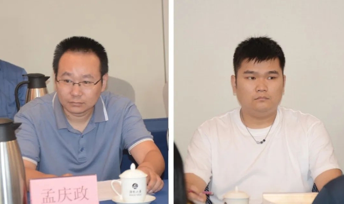 產品部總工程師牛海?。ㄗ螅┖脱邪l(fā)總監(jiān)宋述群(右)參加會議
