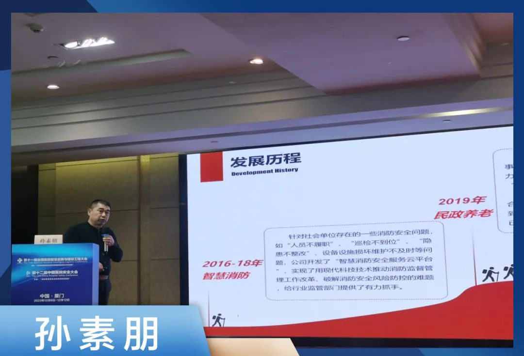 會(huì)議現(xiàn)場(chǎng),中國(guó)醫(yī)藥新聞信息協(xié)會(huì)智慧醫(yī)院與后勤安全信息分會(huì)副會(huì)長(zhǎng)孫素朋進(jìn)行主題演講《智慧消防在醫(yī)院安全中的應(yīng)用研究》。