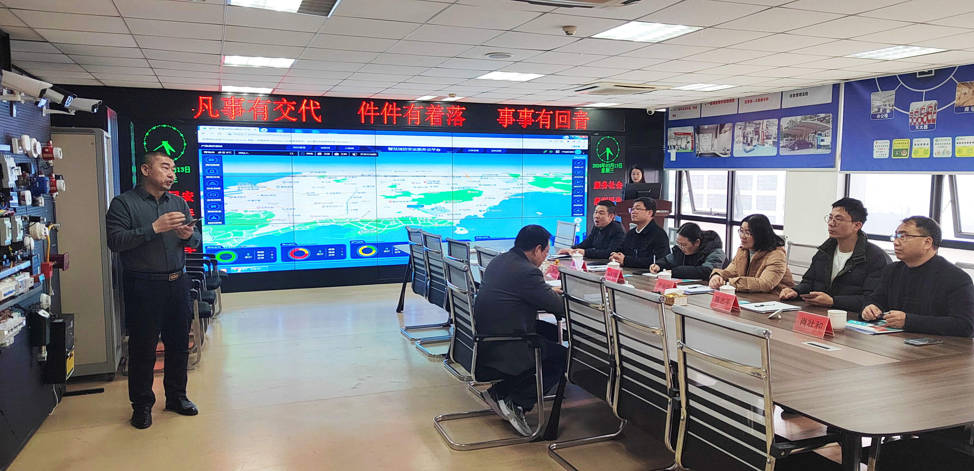 3月13日,江西省贛州市民政局領(lǐng)導(dǎo)一行,在青島市民政局養(yǎng)老服務(wù)處李世明等領(lǐng)導(dǎo)的陪同下蒞臨青島峻海物聯(lián)考察調(diào)研。青島市應(yīng)急管理協(xié)會(huì)副會(huì)長(zhǎng)孫素朋、峻海物聯(lián)總經(jīng)理孫藝等領(lǐng)導(dǎo)陪同接待,并就企業(yè)的發(fā)展歷程、智慧消防業(yè)務(wù)運(yùn)營(yíng)情況以及核心研究成果作了整體介紹。