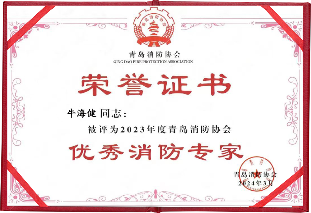 峻海物聯(lián)憑借扎實的專業(yè)技術和優(yōu)質的服務,通過協(xié)會層層審核,榮獲2023年度青島消防協(xié)會“突出貢獻消防企業(yè)”和“119消防宣傳活動先進單位”稱號,牛海健被授予“優(yōu)秀消防專家”榮譽稱號。
