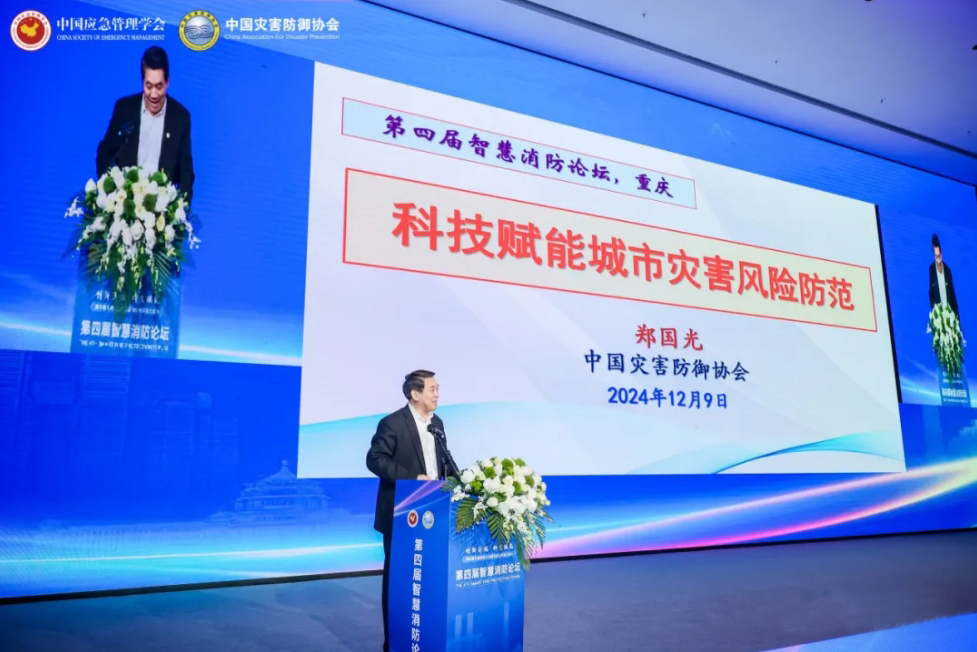 ▲ 國(guó)家減災(zāi)委秘書(shū)長(zhǎng)、應(yīng)急管理部原副部長(zhǎng)鄭國(guó)光致辭