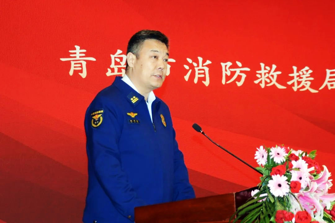 ▲青島市消防救援支隊副支隊長朱本韶致辭