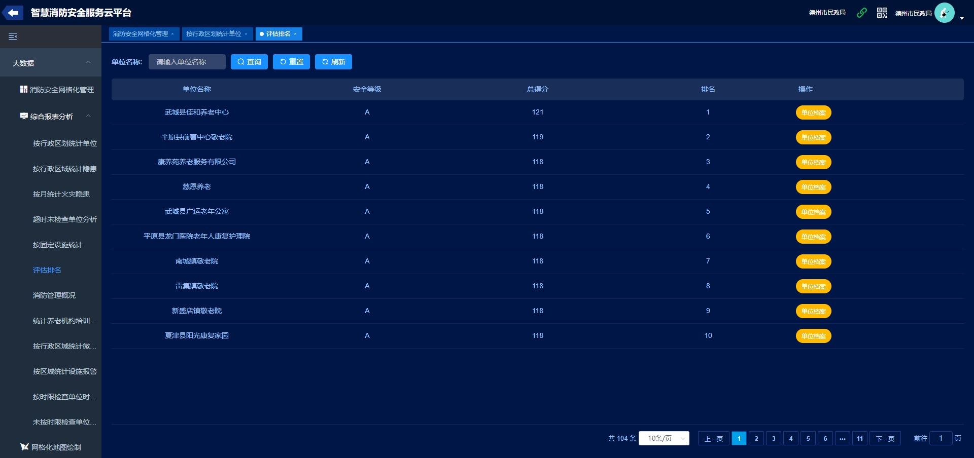 三是智慧消防平臺自動對全市養(yǎng)老機構消防安全管理情況進行綜合評分,形成不同等級,民政部門根據(jù)評分等級兌現(xiàn)獎懲措施,實現(xiàn)敦促后進、正向激勵,為管理者提供工作統(tǒng)計、數(shù)據(jù)考評和輔助決策等功能,實現(xiàn)消防工作數(shù)字化升級。( 通訊員/宋亞麗 李霞 組稿/笑丁)