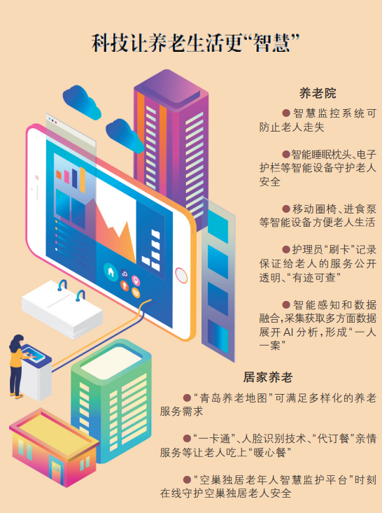 在青島,“智慧化”養(yǎng)老已經(jīng)不再囿于養(yǎng)老院,開始向居家養(yǎng)老領(lǐng)域延伸。從簽約家庭養(yǎng)老床位到養(yǎng)老助餐服務,再到空巢獨居老人的居家安全,“智慧化”養(yǎng)老應用場景越來越多。